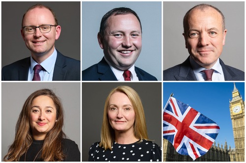 Górny rząd (od lewej do prawej): poseł Andrew Cooper, poseł Ian Murray, poseł Mike Kane