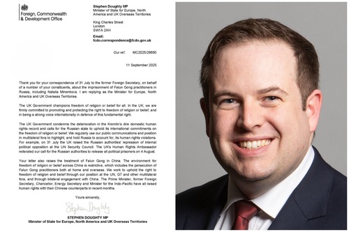 List od Stephena Doughty'ego, posła, ministra stanu ds. Europy, Ameryki Północnej i terytoriów zamorskich Wielkiej Brytanii
