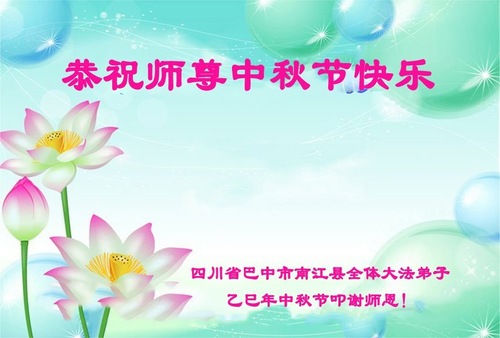 Praktykujący Falun Dafa z prowincji Syczuan z szacunkiem życzą Mistrzowi Li Hongzhi szczęśliwego Święta Środka Jesieni (19 życzeń)