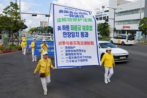 (Minghui.org) W dniach 21 i 22 września 2025 r. na wyspie Jeju w Korei Południowej odbyła się parada na cześć 450 milionów Chińczyków, którzy wystąpili z Komunistycznej Partii Chin (KPCh) i powiązanych z nią organizacji. Wyspa Jeju jest ulubionym celem chińskich turystów, oferując bezwizowy wjazd i przyciągając każdego roku dużą liczbę odwiedzających.
