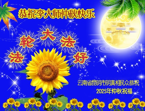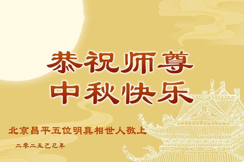 (Minghui.org) Aby uczcić Święto Środka Jesieni 2025, zwolennicy Falun Dafa z całych Chin przesyłają serdeczne pozdrowienia Mistrzowi Li Hongzhi, założycielowi Falun Dafa, życząc Mu Szczęśliwego Święta Środka Jesieni.