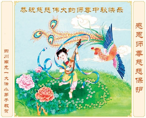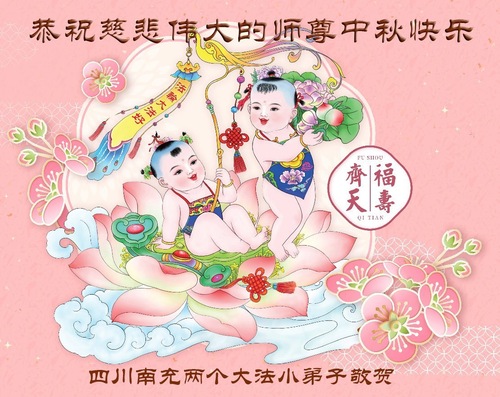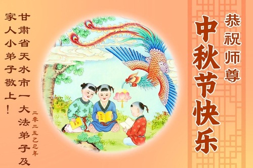 Małżeństwo z miasta Fuzhou w prowincji Fujian i ich dwójka małych dzieci, którzy życzyli Mistrzowi Szczęśliwego Święta Środka Jesieni, napisało: „Zbliża się Święto Środka Jesieni, jesteśmy wdzięczni za pełne współczucia wyzwolenie Mistrza! Bez względu na to, jak trudna może być kultywacja, nic nie zachwieje naszą wiarą w Mistrza i Fa. Nieskończone słowa nie wyrażą naszej bezgranicznej wdzięczności Mistrzowi. Jedynym sposobem, aby odwdzięczyć się Mistrzowi za łaskę, jest pilna kultywacja i ocalanie większej liczby czujących istot!”