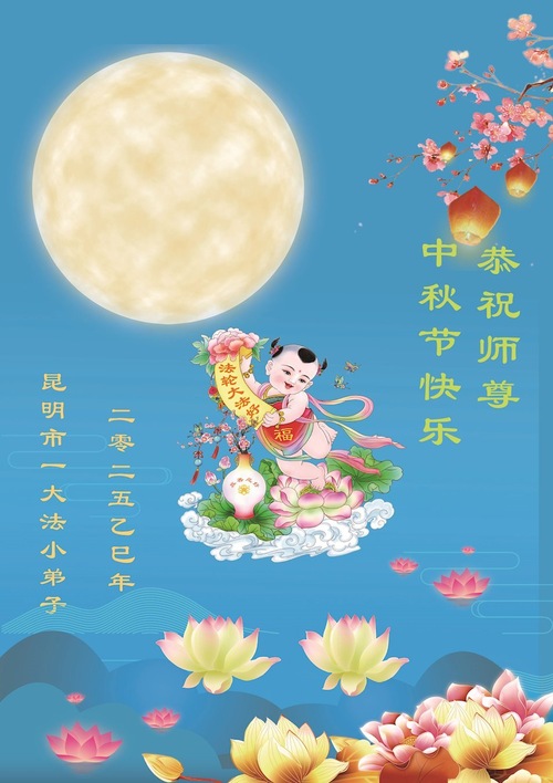 (Minghui.org) Święto Środka Jesieni 2025 jest już za dzień, a wielu młodych praktykujących Falun Dafa w Chinach przesyła serdeczne pozdrowienia Mistrzowi Li, założycielowi Falun Dafa. Wielu z tych młodych praktykujących poszło w ślady swoich rodziców i kultywowało. Przyrzekli, że będą lepiej kultywować i dziękowali Mistrzowi za Jego pełne współczucia wyzwolenie.