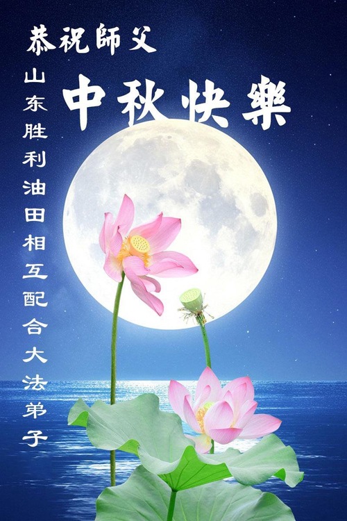 Dwie rodziny trzech pokoleń z pola naftowego Shengli w prowincji Szantung składają Mistrzowi życzenia z okazji Święta Środka Jesieni.