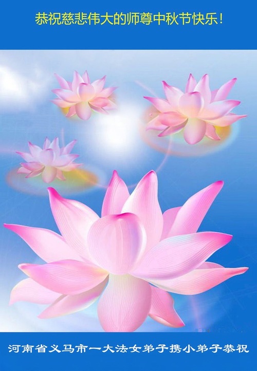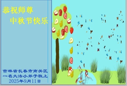 6-letni praktykujący z miasta Xingcheng w prowincji Liaoning napisał: „Życzę Mistrzowi Szczęśliwego Święta Środka Jesieni. Będę podążać za wskazówkami Falun Dafa, aby lepiej się kultywować. Dziękuję, Mistrzu!”.