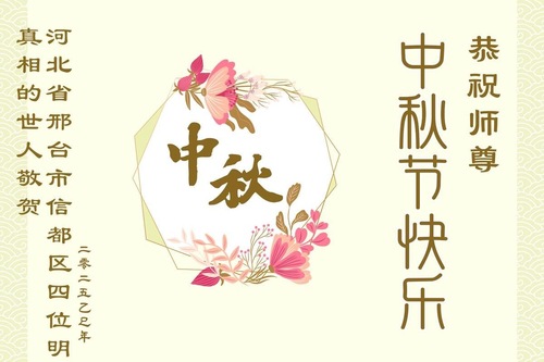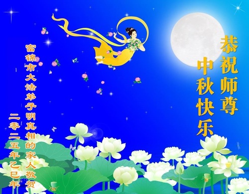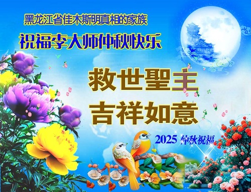 (Minghui.org) Z okazji Święta Środka Jesieni 2025 (6 października), zwolennicy Falun Dafa w całych Chinach przesyłają serdeczne pozdrowienia Mistrzowi Li Hongzhi, założycielowi Falun Dafa, życząc Mistrzowi wesołych świąt.