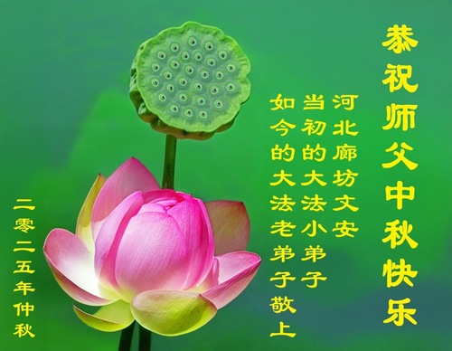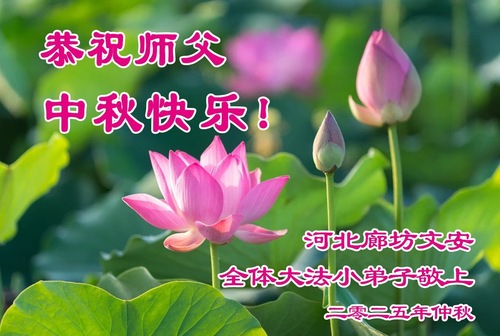 (Minghui.org) Zbliża się Święto Środka Jesieni 2025 roku, a wielu praktykujących Falun Dafa przesyła serdeczne pozdrowienia Mistrzowi Li Hongzhi, założycielowi praktyki. Wyrażają wdzięczność Mistrzowi Li za otrzymane korzyści i obiecują, że będą bardziej pilni w swojej kultywacji.