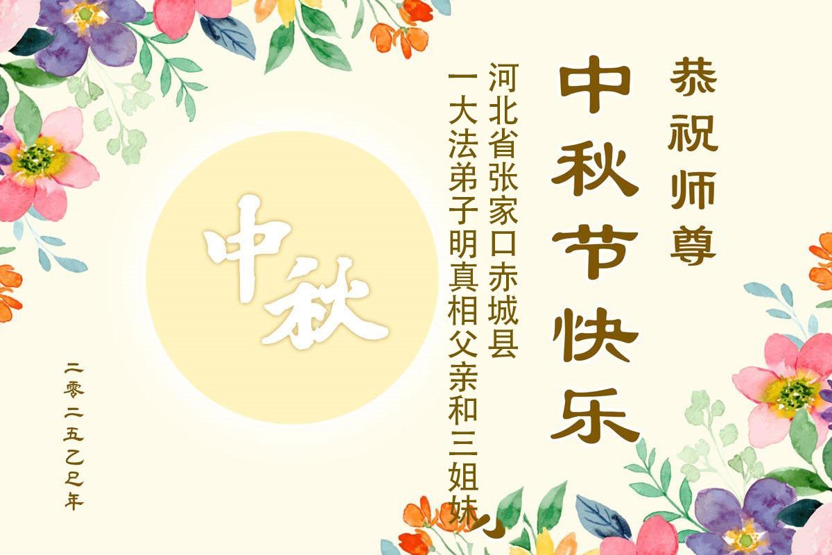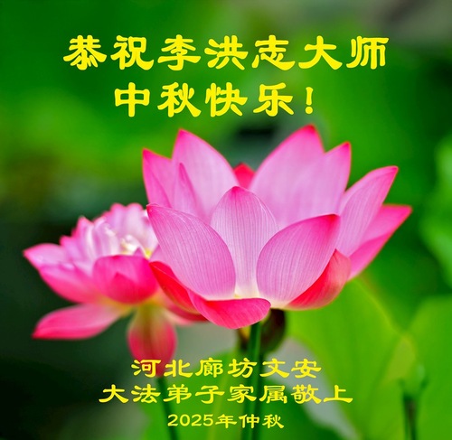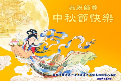 (Minghui.org) W przededniu Święta Środka Jesieni 2025 (6 października) zwolennicy Falun Dafa w całych Chinach przesyłają serdeczne pozdrowienia Mistrzowi Li Hongzhi, założycielowi Falun Dafa, życząc Mistrzowi wesołych świąt.
