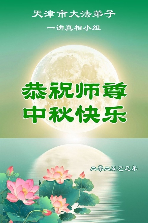 Praktykujący Falun Dafa z Tianjinu z szacunkiem składają Mistrzowi Li Hongzhi życzenia Szczęśliwego Święta Środka Jesieni (18 pozdrowień)