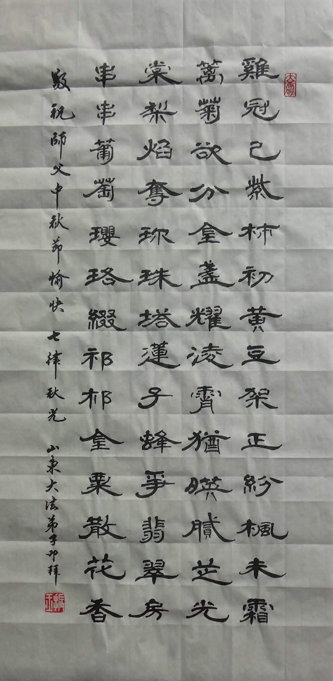 Praktykujący Falun Dafa z prowincji Szantung składają Czcigodnemu Mistrzowi życzenia z okazji Święta Środka Jesieni!