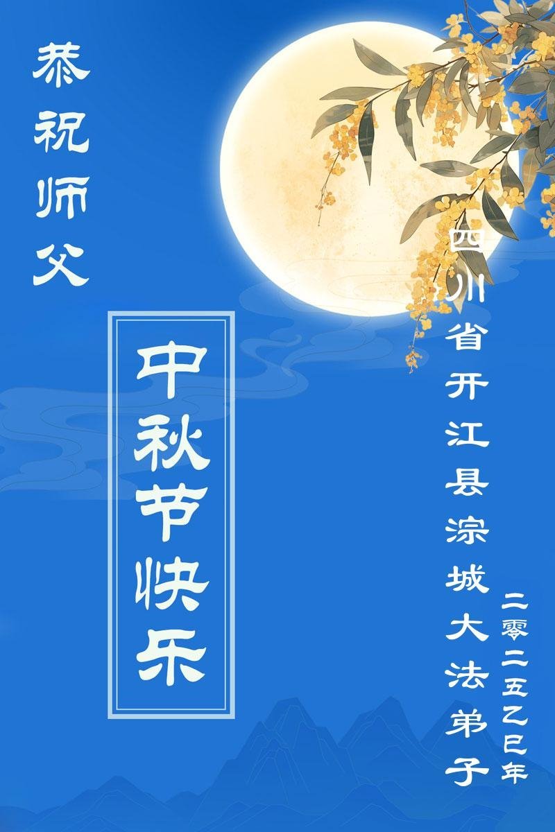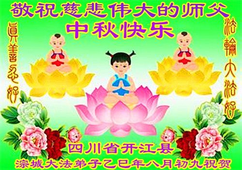 Praktykujący Falun Dafa z prowincji Syczuan z szacunkiem życzą Mistrzowi Li Hongzhi szczęśliwego Święta Środka Jesieni (20 życzeń)