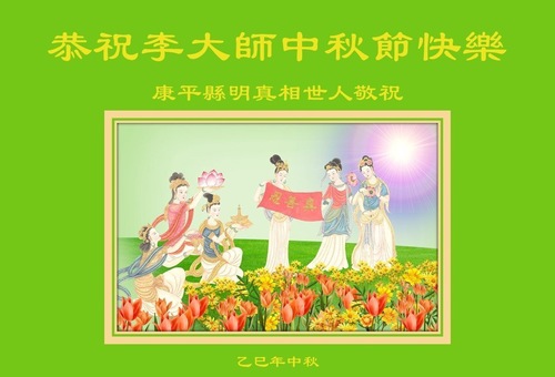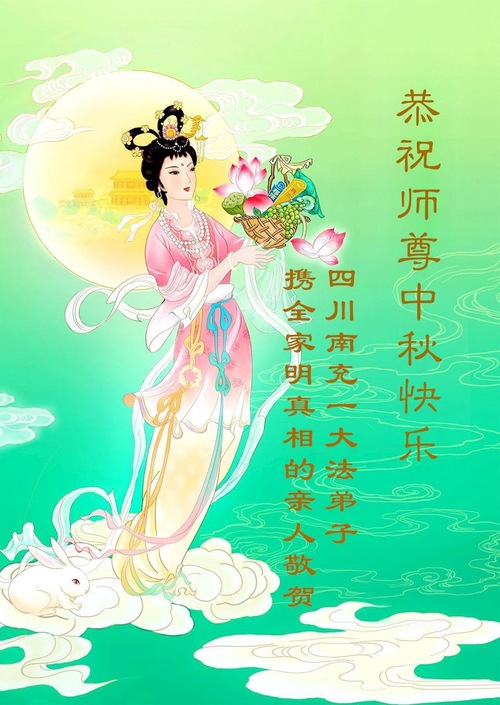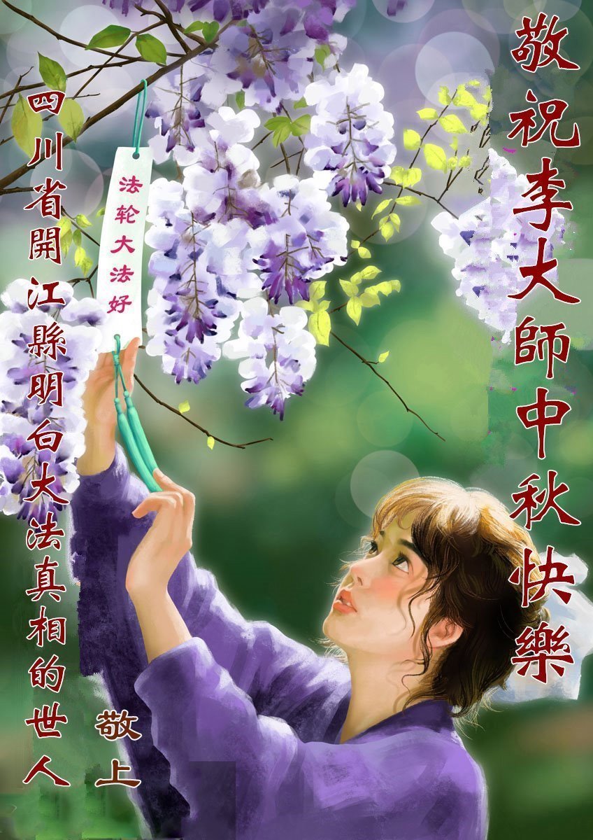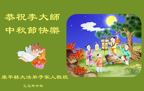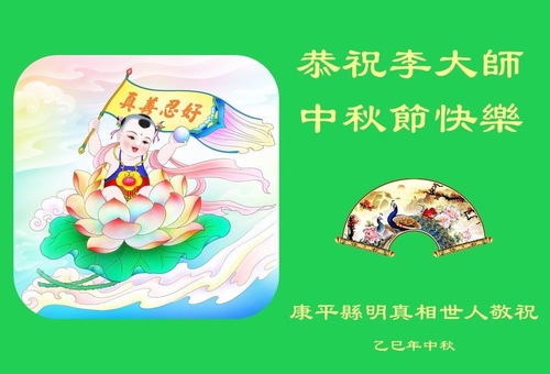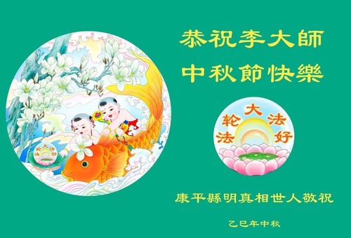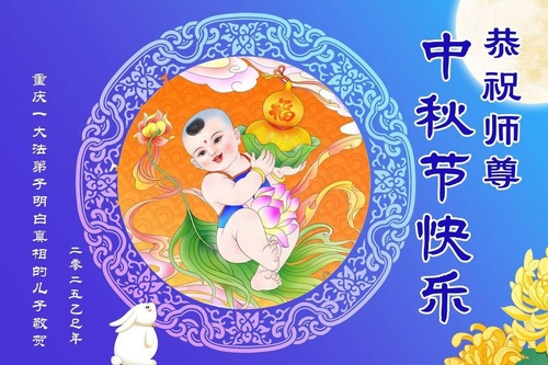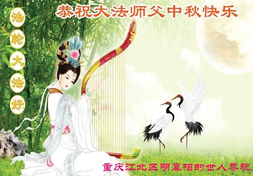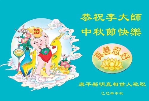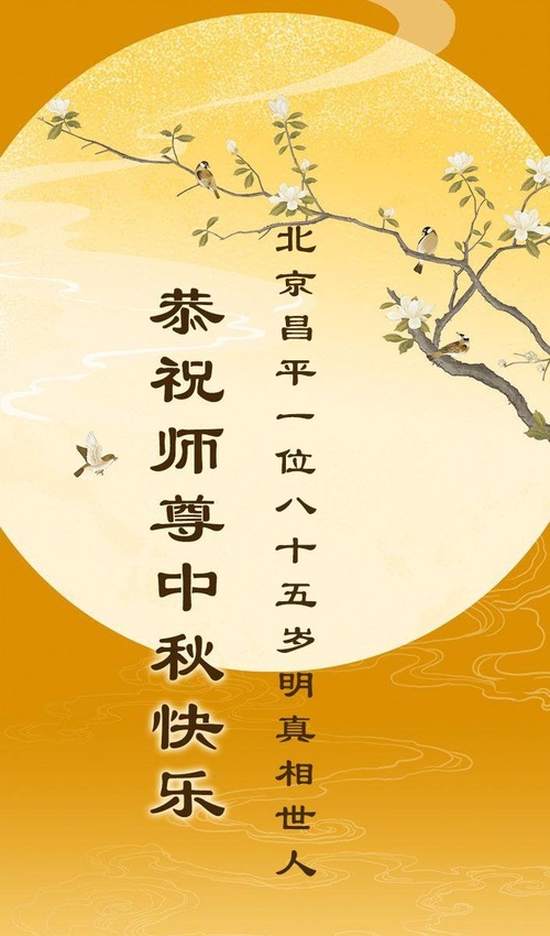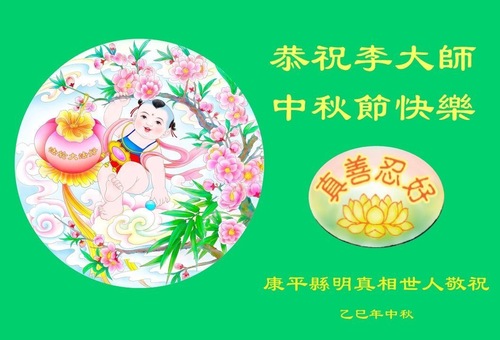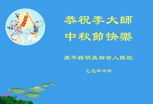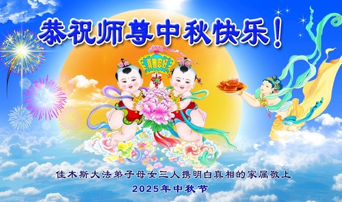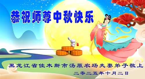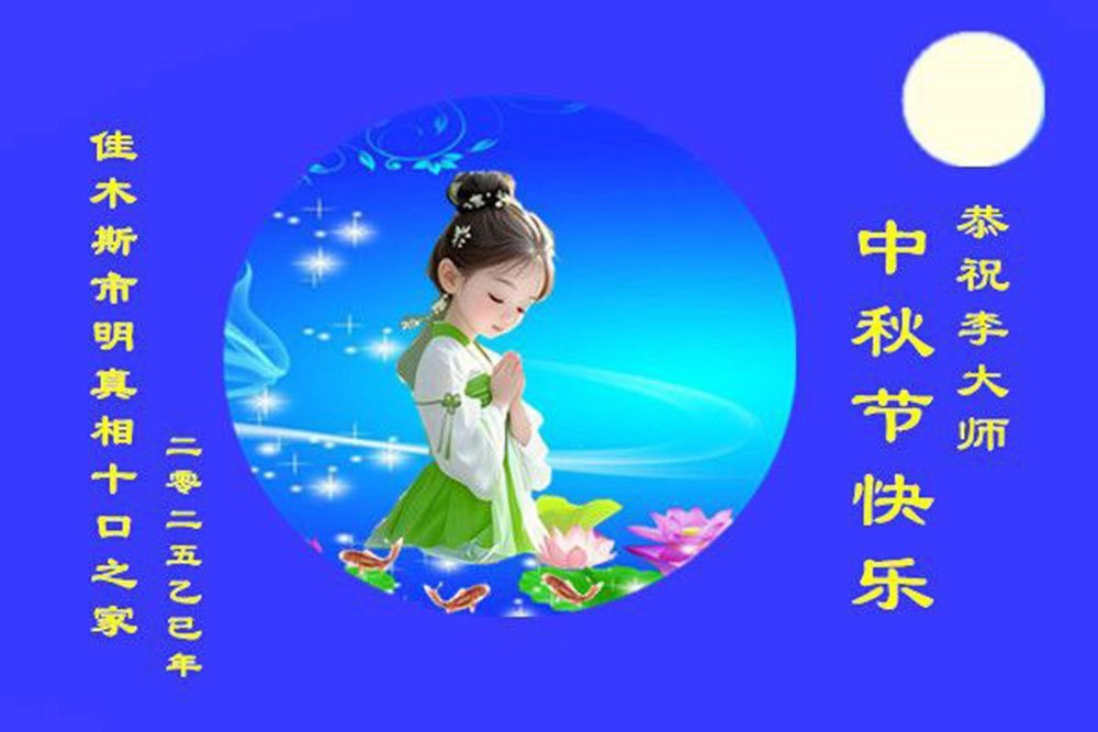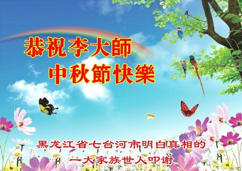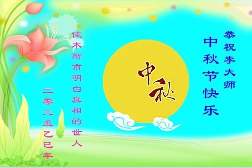 Mieszkańcy miasta Jiamusi w prowincji Heilongjiang powiedzieli: „Zrozumieliśmy fakty dotyczące Dafa dzięki praktykującemu. Z okazji Święta Środka Jesieni chcielibyśmy życzyć Mistrzowi Li wesołych świąt!”.