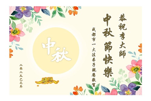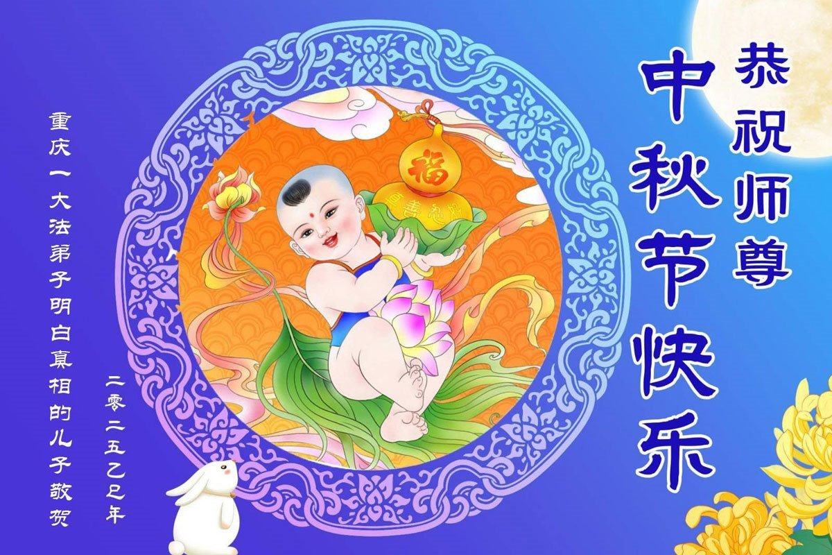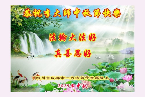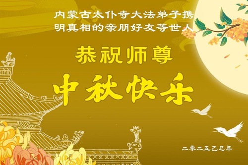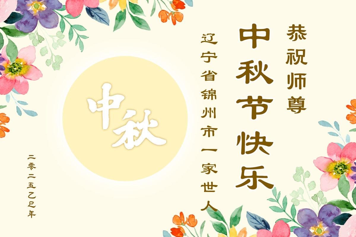 (Minghui.org) Wraz ze zbliżającym się Świętem Środka Jesieni 2025 (które przypada 6 października), zwolennicy Falun Dafa w całych Chinach przesyłają serdeczne pozdrowienia Mistrzowi Li Hongzhi, założycielowi Falun Dafa, życząc mu wesołych świąt.