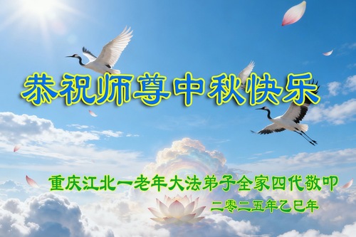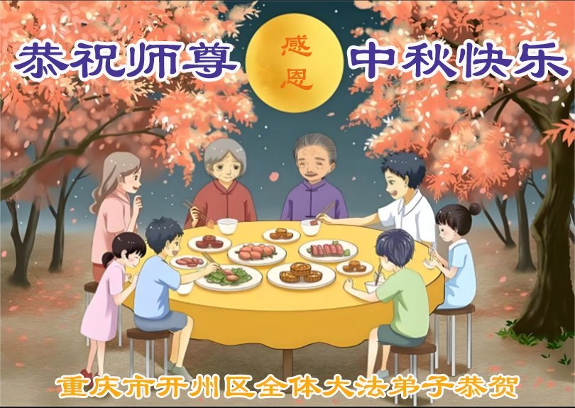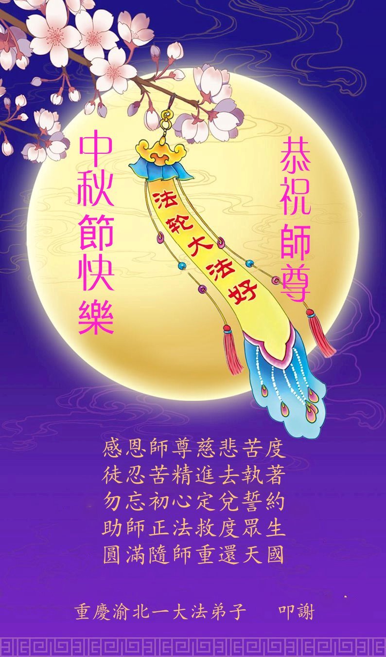 Praktykujący Falun Dafa w Chongqing z szacunkiem składają Mistrzowi Li Hongzhi życzenia Szczęśliwego Święta Środka Jesieni (94 pozdrowienia)