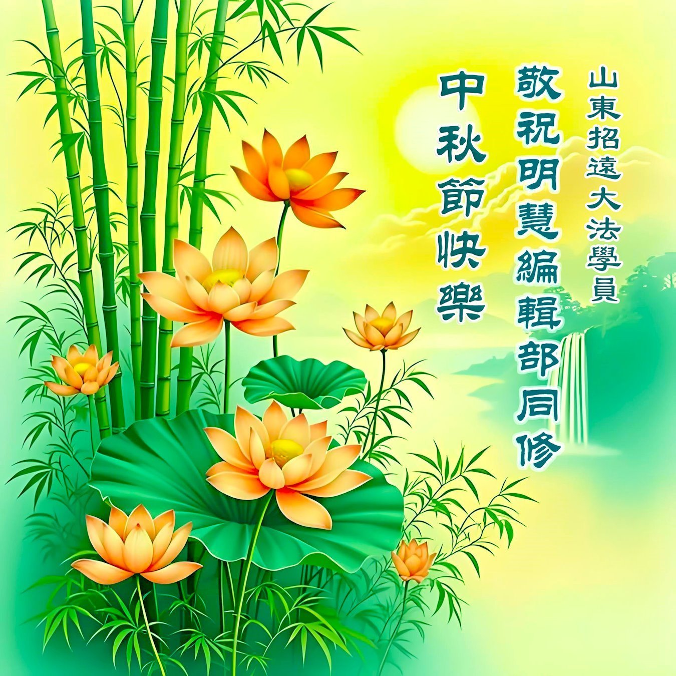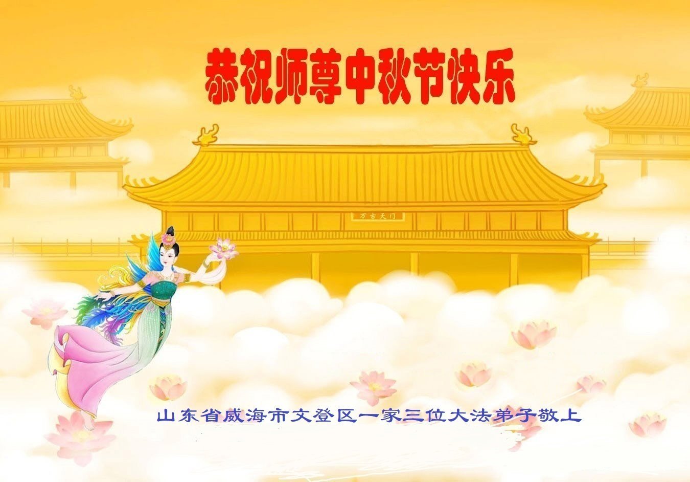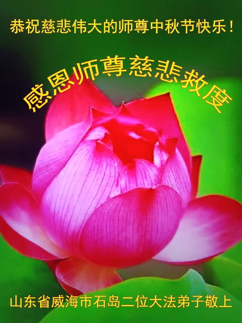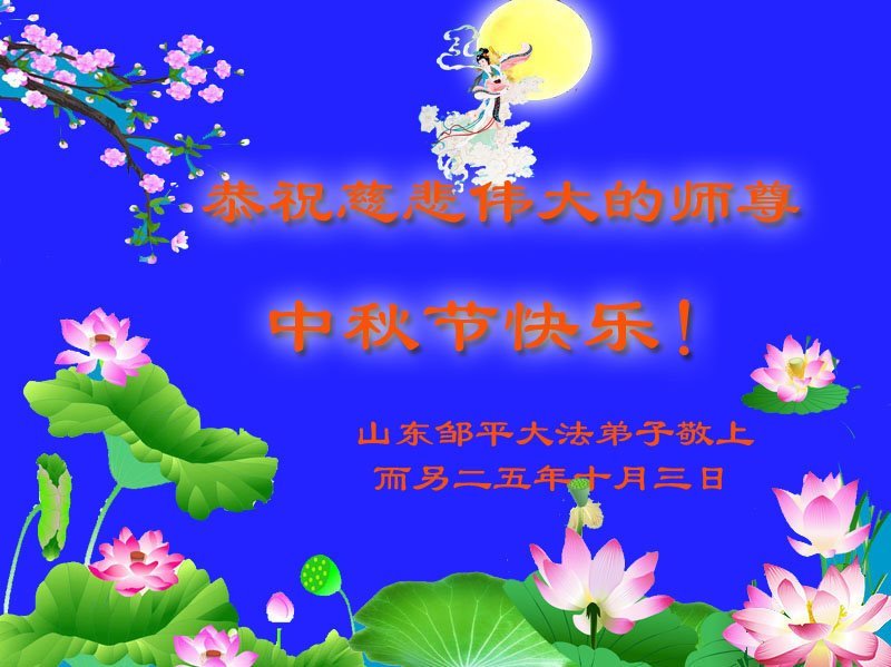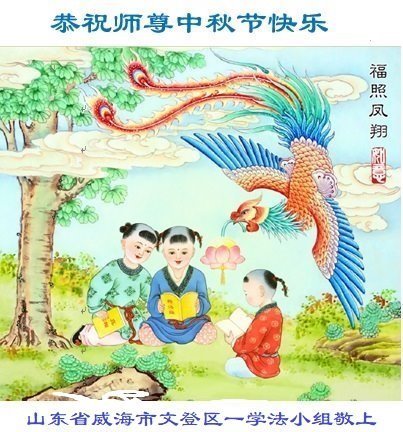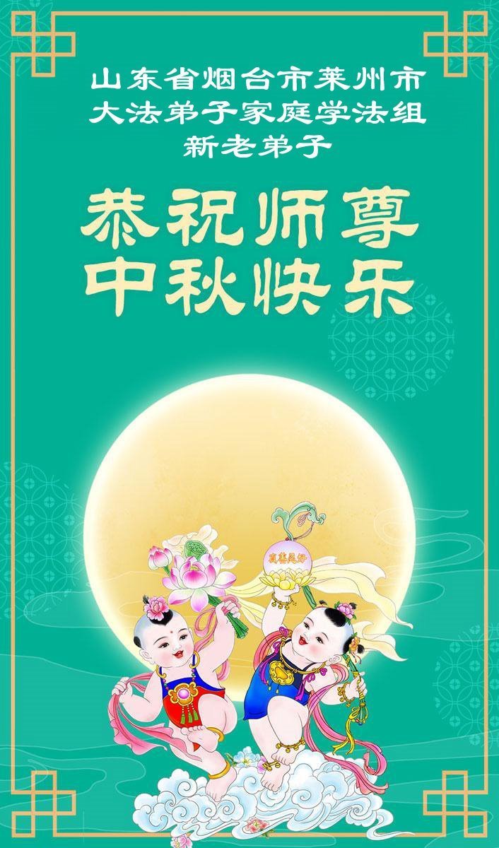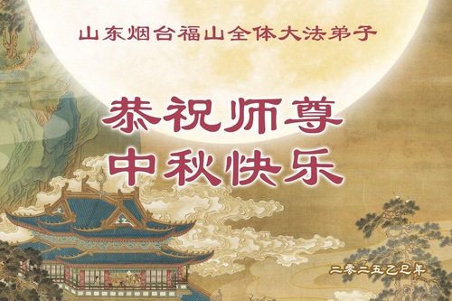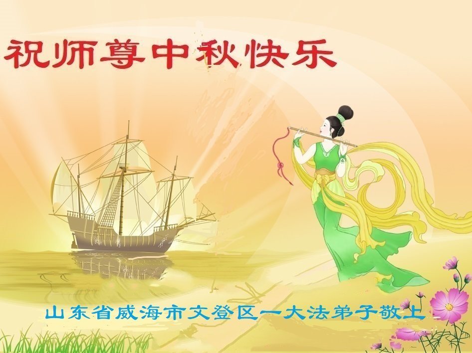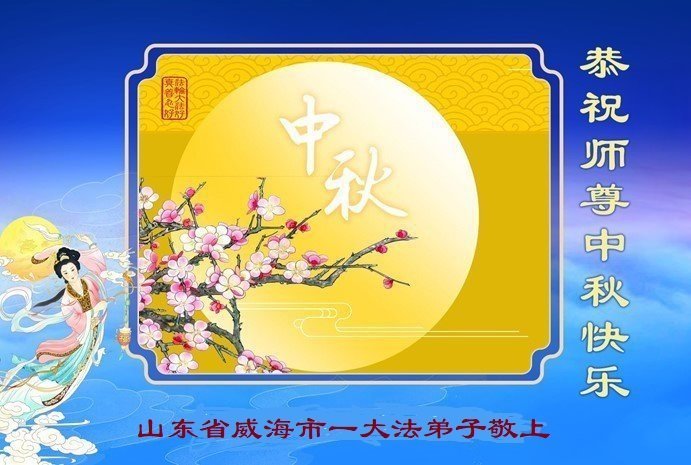 Praktykujący Falun Dafa z miast/miasteczek/regionów Yantai, Zouping, Longkou, Laiyang i Weihai życzą Czcigodnemu Mistrzowi Wesołego Święta Środka Jesieni!