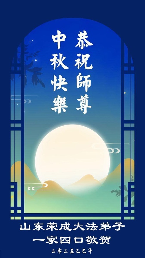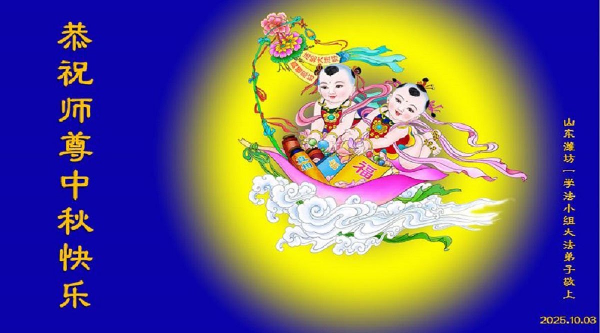 Praktykujący Falun Dafa z miast/miasteczek/regionów Liaocheng, Tai’an, Dongying i Binzhou życzą Czcigodnemu Mistrzowi Szczęśliwego Święta Środka Jesieni!