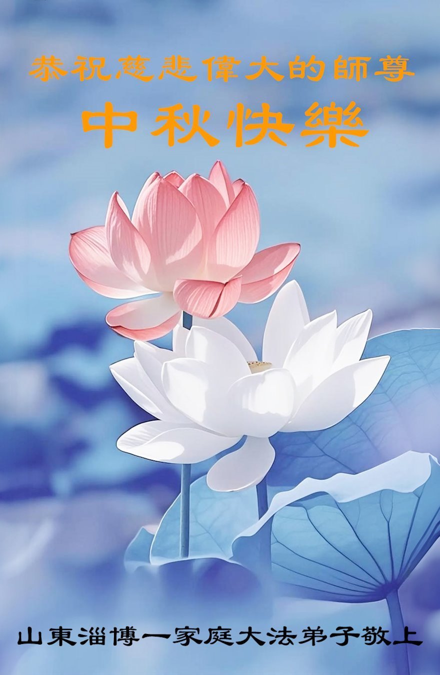 Praktykujący Falun Dafa z miast/miasteczek/regionów Zibo, Jining, Heze i Rizhao życzą Czcigodnemu Mistrzowi Szczęśliwego Święta Środka Jesieni!