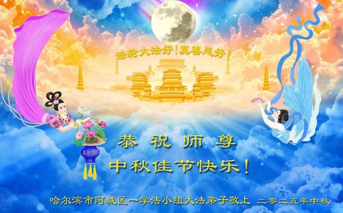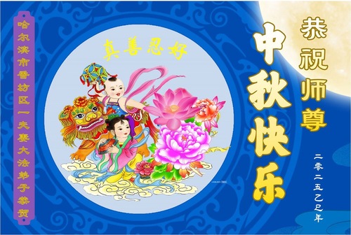 Praktykujący Falun Dafa z miast/miasteczek/regionów Hegang, Yichun, Qitaihe, Heihe, Harbin, Daxing’anling i Shuangyashan życzą Czcigodnemu Mistrzowi Szczęśliwego Święta Środka Jesieni!