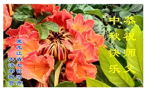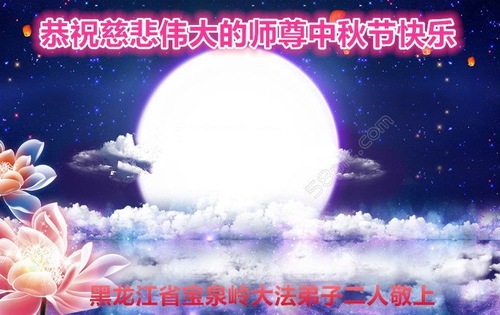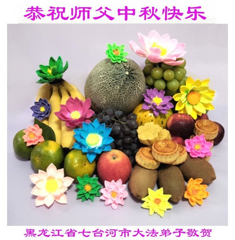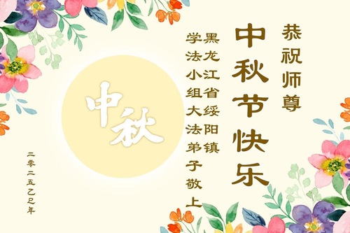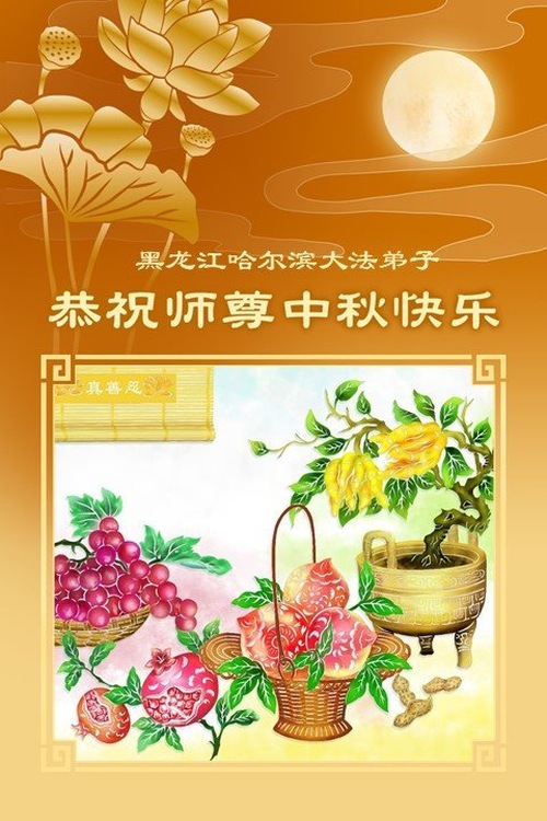Praktykujący Falun Dafa z miast/miejscowości/obszarów w Hegang, Suiyang, Suihua, Yichun, Qitaihe, Dongning, Nenjiang, Daxing’anling, Mudanjiang, Wusulijiang i Shuangyashan życzą Mistrzowi Wesołego Święta Środka Jesieni!