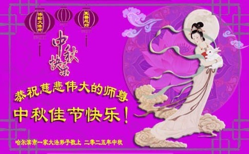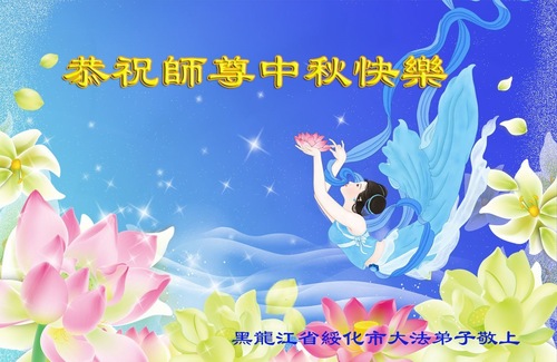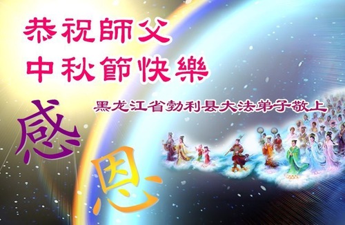 Praktykujący Falun Dafa z miast/miejscowości/obszarów Hegang, Suiyang, Suihua, Dongning, Yichun, Mudanjiang, Heihe i Qitaihe życzą Czcigodnemu Mistrzowi Wesołego Święta Środka Jesieni!