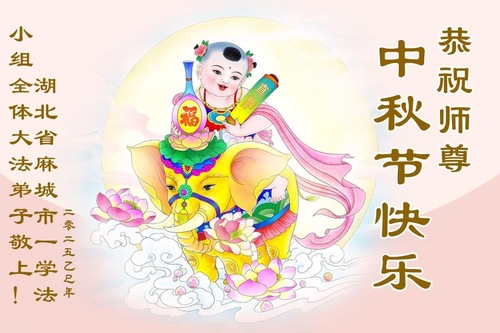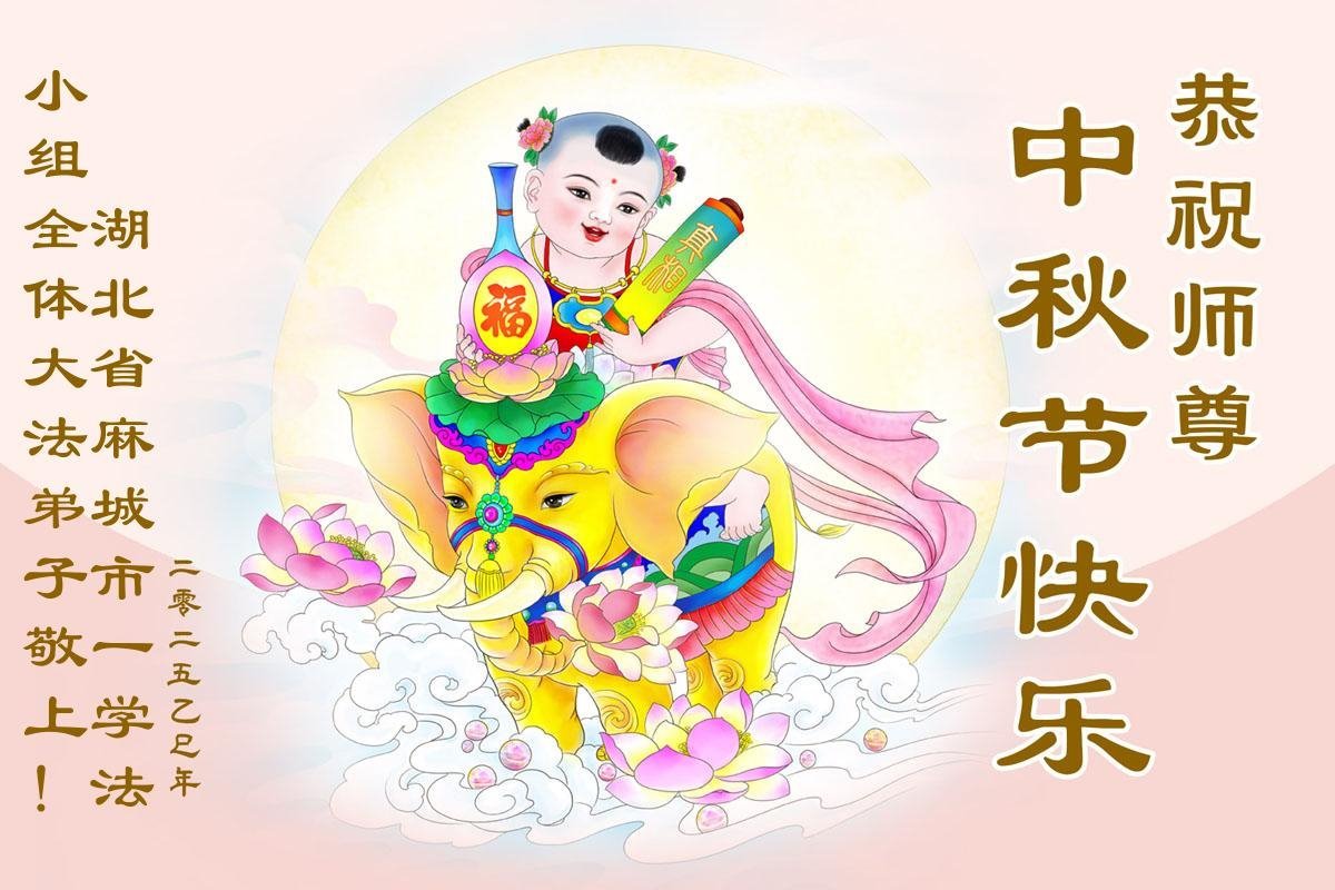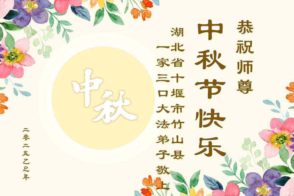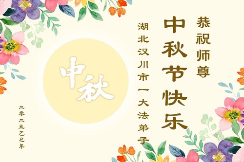 Praktykujący Falun Dafa z miast/miasteczek/obszarów Shiyan, Wuhan, Huanggang, Yichang, Suizhou, Xiaogan, Jingzhou, Tianmen, Xiangyang i Xiantao w prowincji Hubei życzą Czcigodnemu Mistrzowi Wesołego Święta Środka Jesieni!