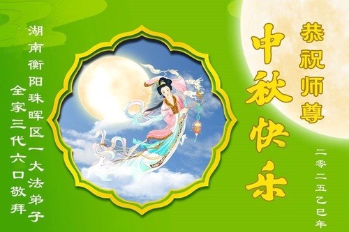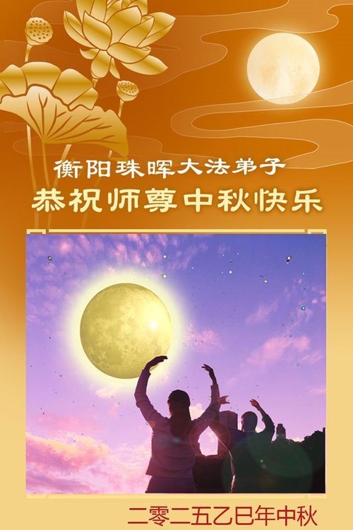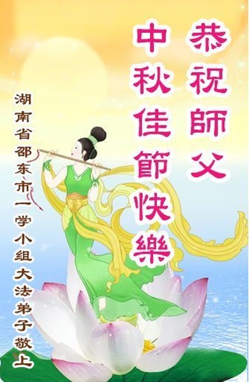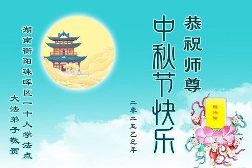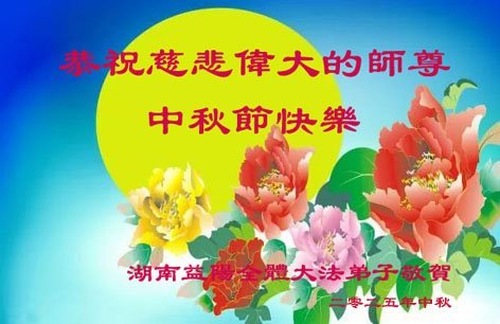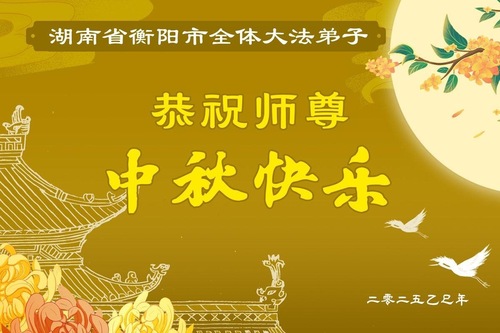 Praktykujący Falun Dafa z miast/miejscowości/obszarów Yueyang, Hengyang, Chenzhou, Yiyang, Shaoyang, Shaodong, Huaihua, w prowincji Hunan życzą Czcigodnemu Mistrzowi Szczęśliwego Święta Środka Jesieni!