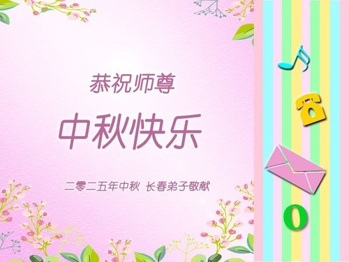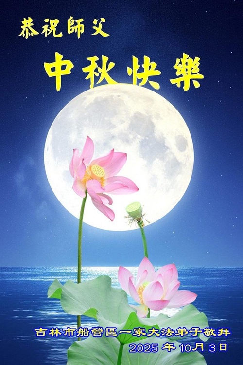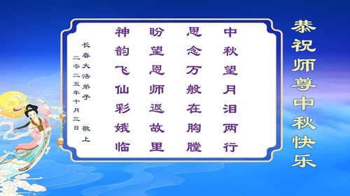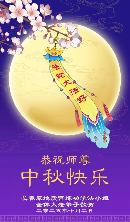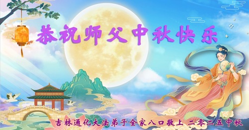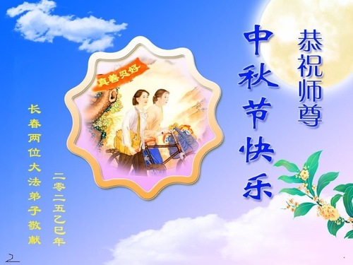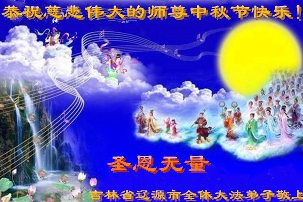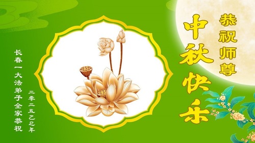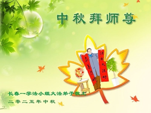 Praktykujący Falun Dafa z miast/miasteczek/obszarów Tonghua, Changchun, Jilin w prowincji Jilin życzą Czcigodnemu Mistrzowi Wesołego Święta Środka Jesieni!