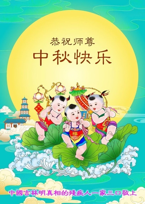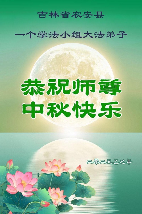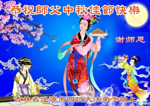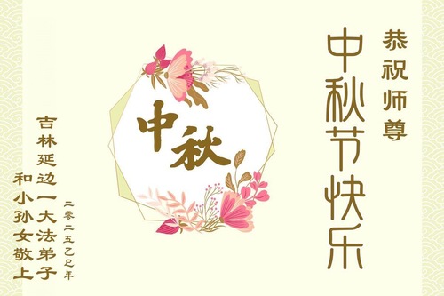 Praktykujący Falun Dafa z miast/miasteczek/regionów Baicheng, Yanji, Songyuan i Liaoyuan w prowincji Jilin życzą Czcigodnemu Mistrzowi Wesołego Święta Środka Jesieni!