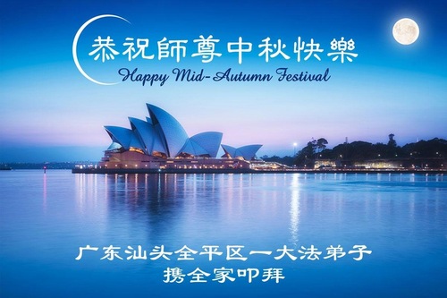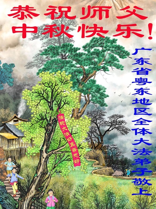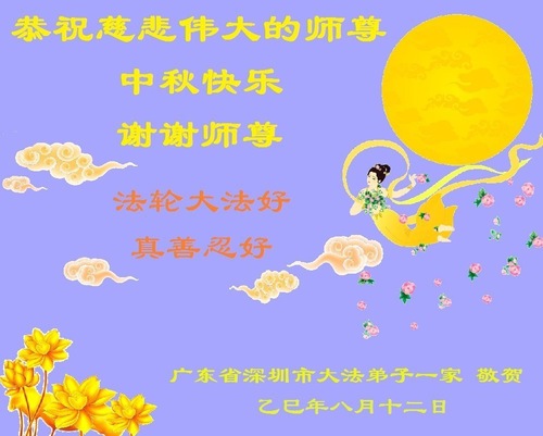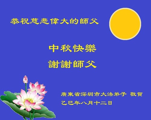 Praktykujący Falun Dafa z miast/miasteczek/obszarów Shenzhen, Yangjiang, Chaozhou, Shantou, Jieyang, Zhuhai, Meizhou, Maoming, Shanwei i Huizhou w prowincji Guangdong życzą Czcigodnemu Mistrzowi Wesołego Święta Środka Jesieni!