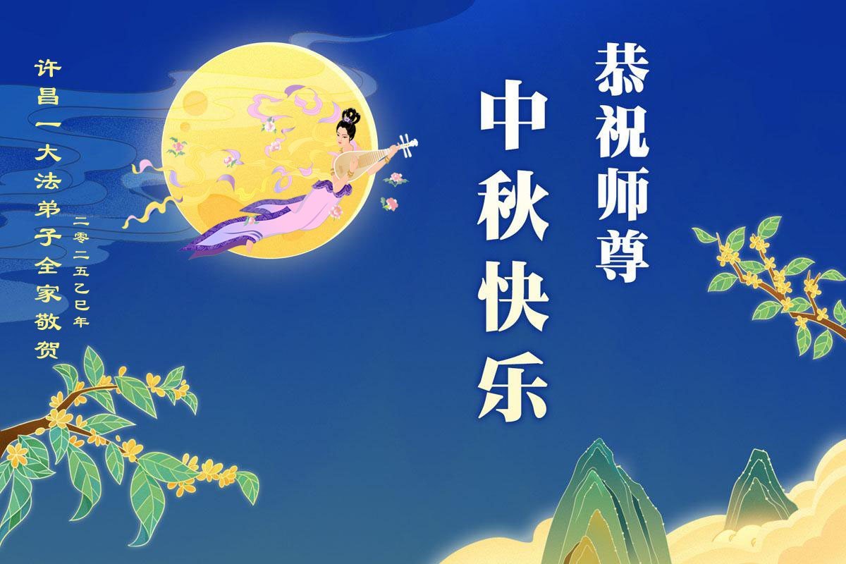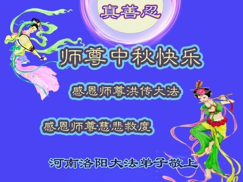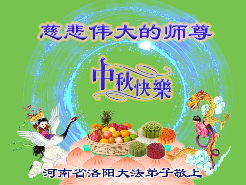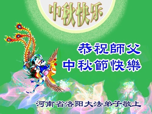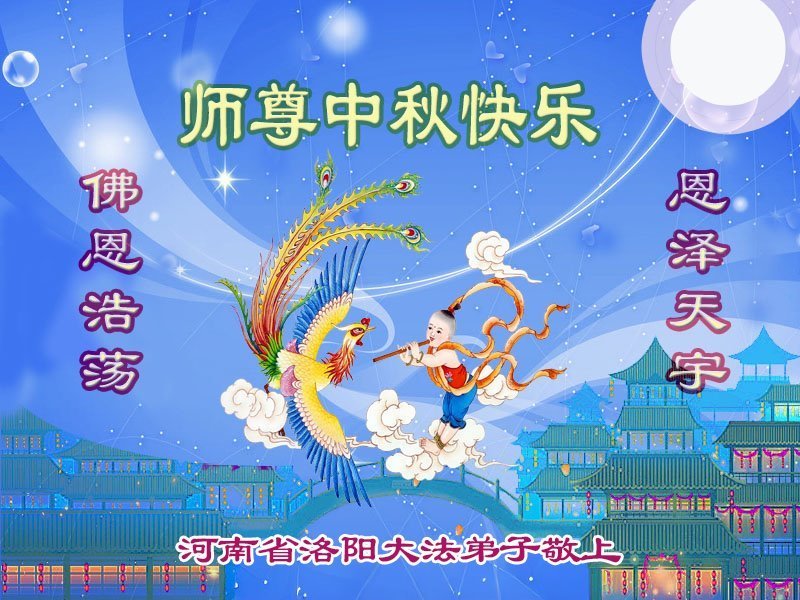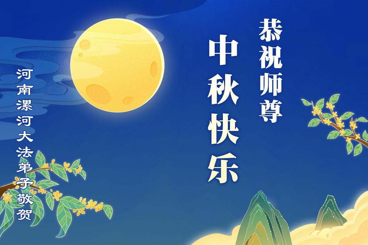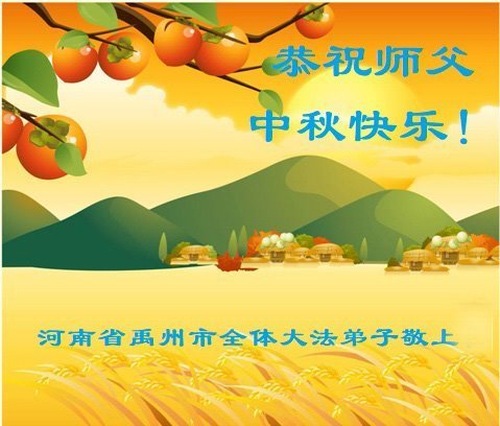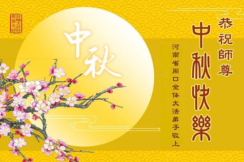 Praktykujący Falun Dafa z miast/miasteczek/obszarów Zhoukou, Xuchang, Luoyang, Luohe, Pingdingshan, Shangqiu, Nanyang, Xinxiang i Puyang w prowincji Henan życzą Czcigodnemu Mistrzowi Wesołego Święta Środka Jesieni!