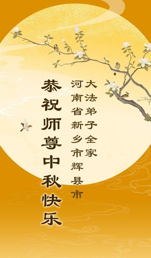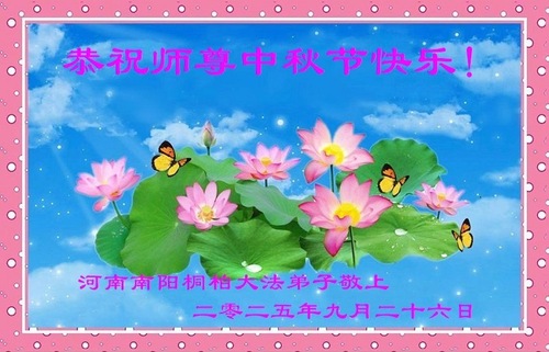 Praktykujący Falun Dafa w prowincjach Henan i Guangdong z szacunkiem składają Mistrzowi Li Hongzhi życzenia Szczęśliwego Święta Środka Jesieni (83 pozdrowienia)