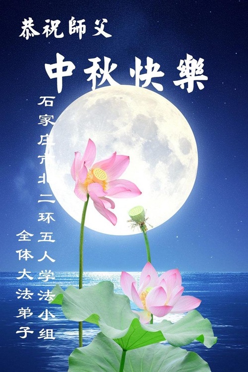 Praktykujący Falun Dafa z miasta Shijiazhuang w prowincji Hebei życzą Czcigodnemu Mistrzowi Wesołego Święta Środka Jesieni!