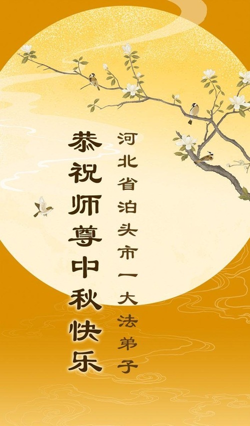 Praktykujący Falun Dafa z miast Baoding, Tangshan i Qinhuangdao życzą Czcigodnemu Mistrzowi Szczęśliwego Święta Środka Jesieni!