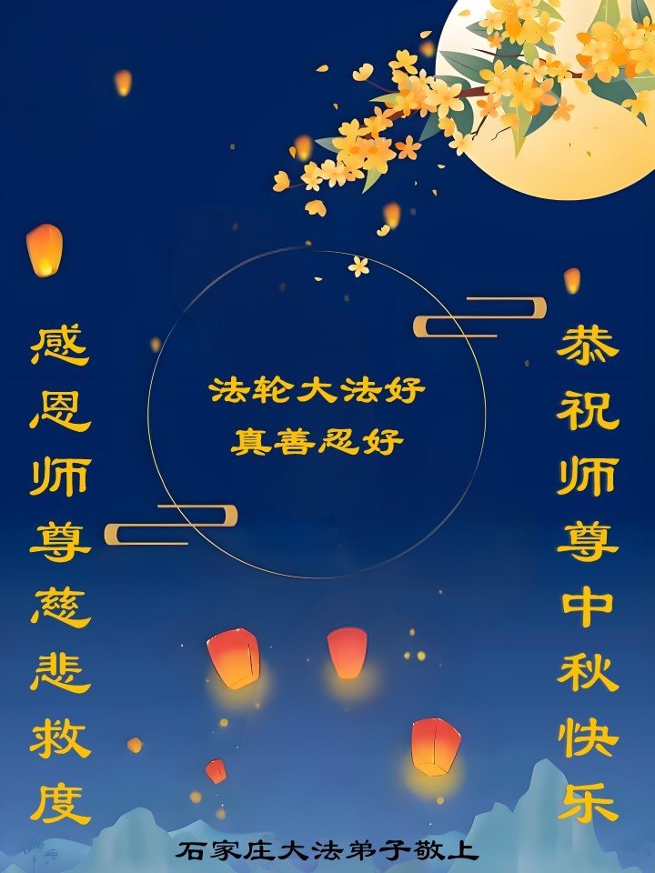 Praktykujący Falun Dafa z miasta Shijiazhuang w prowincji Hebei życzą Czcigodnemu Mistrzowi Wesołego Święta Środka Jesieni!