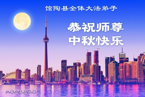 Praktykujący Falun Dafa z miasta Langfang życzą Czcigodnemu Mistrzowi Szczęśliwego Święta Środka Jesieni!