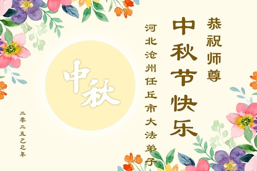 Praktykujący Falun Dafa z miasta Cangzhou życzą Czcigodnemu Mistrzowi Szczęśliwego Święta Środka Jesieni!