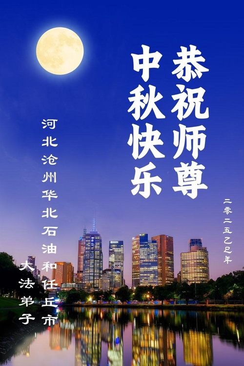 Praktykujący Falun Dafa z prowincji Hebei życzą Czcigodnemu Mistrzowi Szczęśliwego Święta Środka Jesieni!