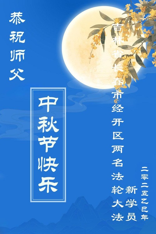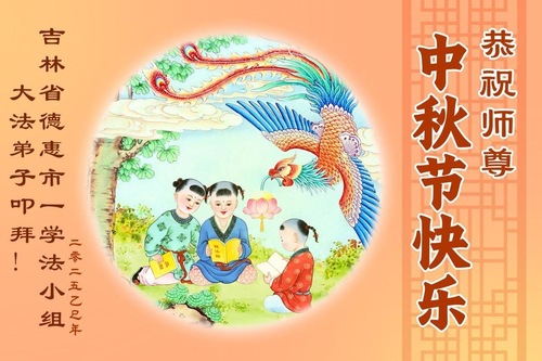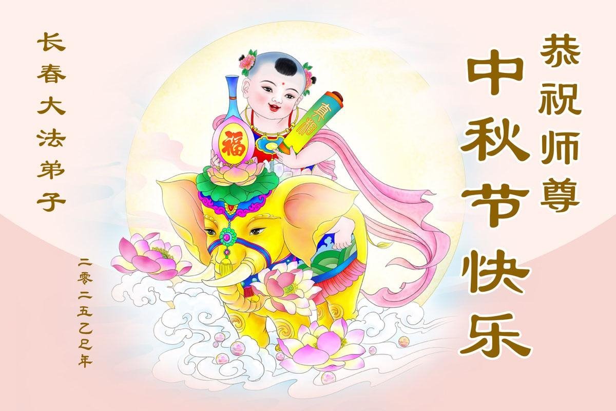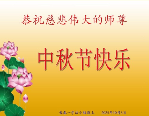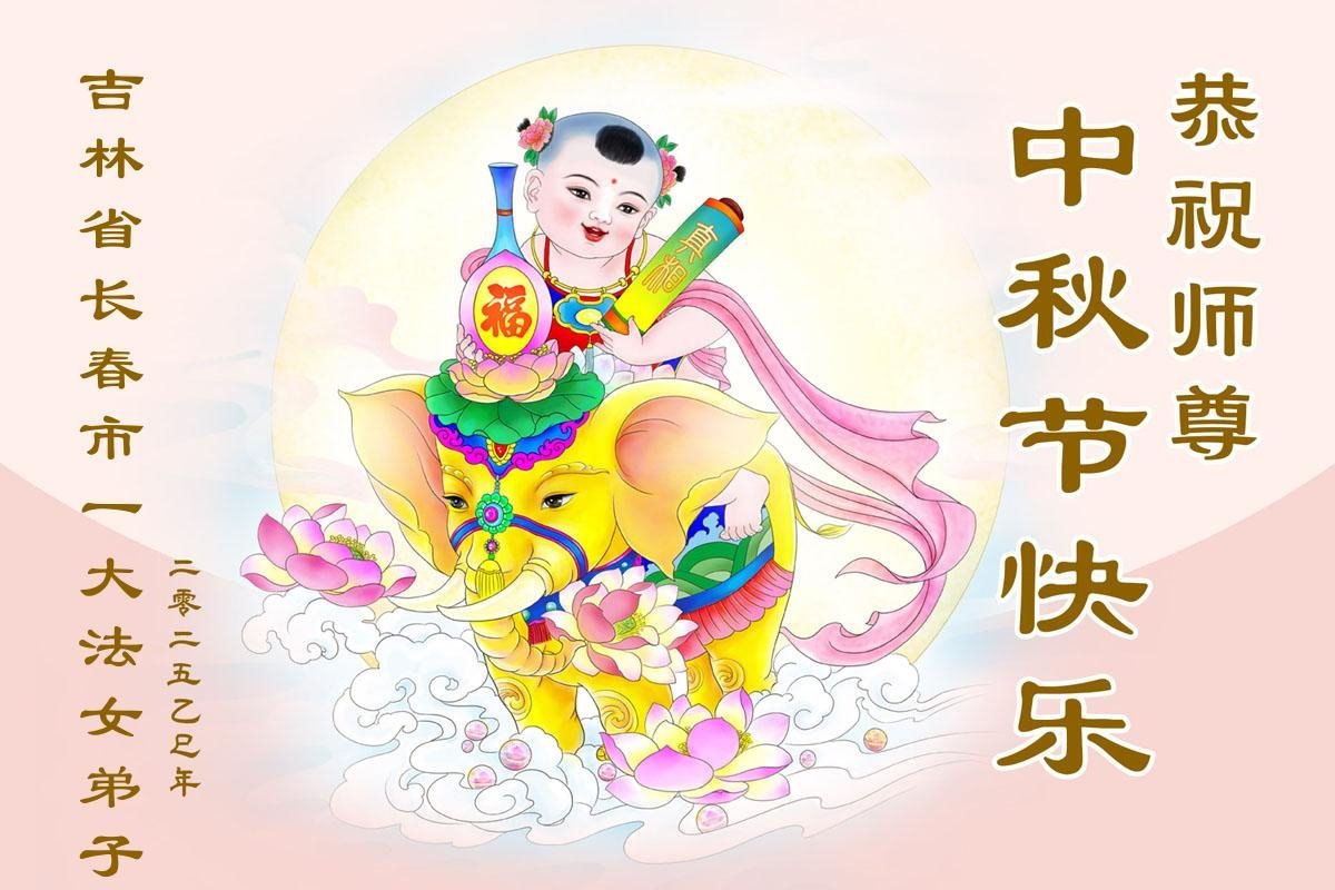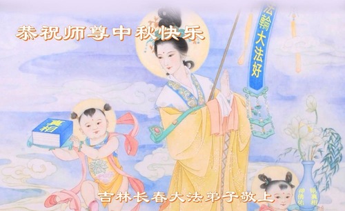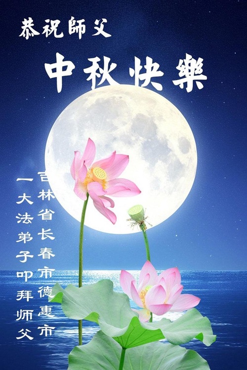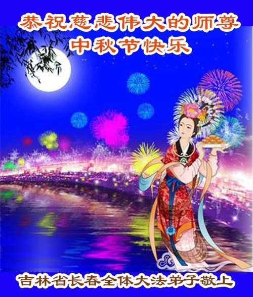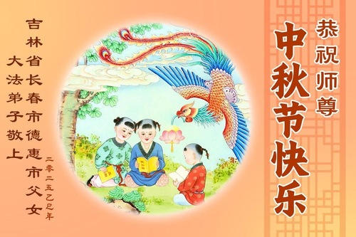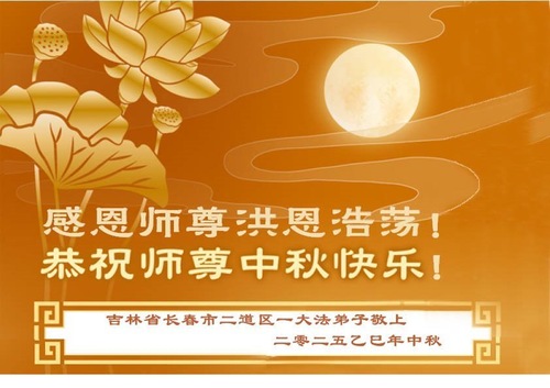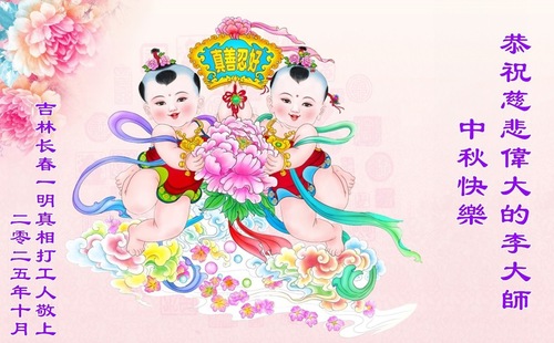 Praktykujący Falun Dafa z miasta Changchun życzą Czcigodnemu Mistrzowi Wesołego Święta Środka Jesieni!