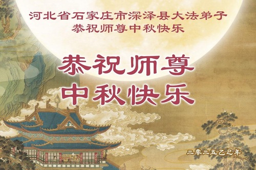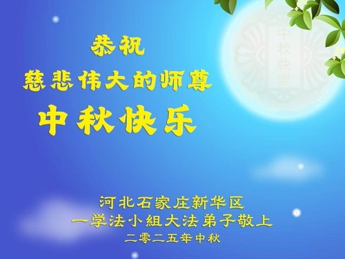 Praktykujący Falun Dafa z miasta Shijiazhuang życzą Czcigodnemu Mistrzowi Szczęśliwego Święta Środka Jesieni!