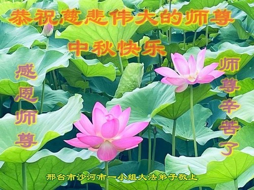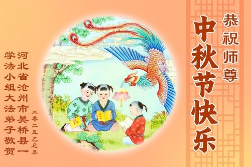 Praktykujący Falun Dafa z miasta Shijiazhuang życzą Czcigodnemu Mistrzowi Wesołego Święta Środka Jesieni!