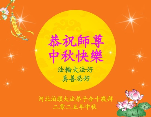 Praktykujący Falun Dafa z prowincji Hebei życzą Czcigodnemu Mistrzowi Szczęśliwego Święta Środka Jesieni!
