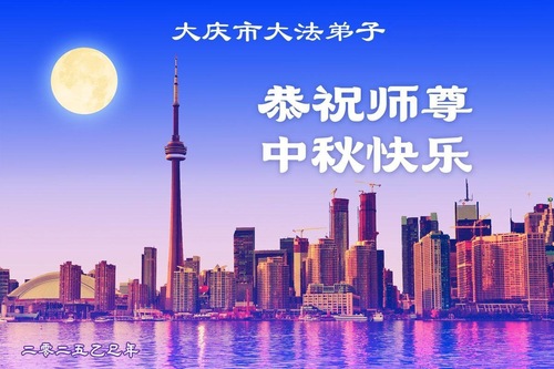 Praktykujący Falun Dafa z miasta Daqing życzą Czcigodnemu Mistrzowi Wesołego Święta Środka Jesieni!