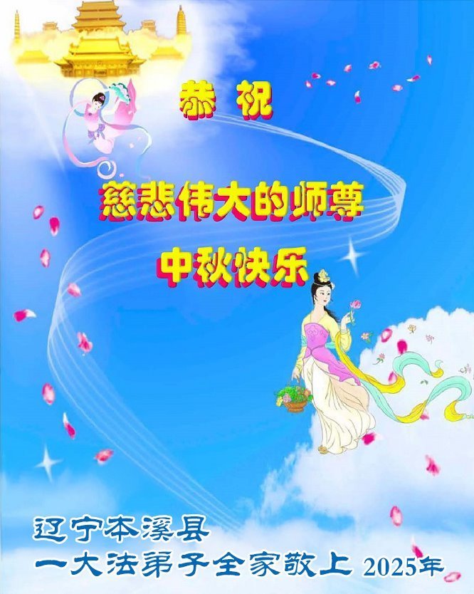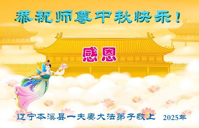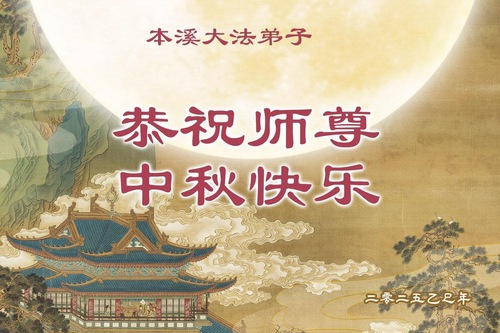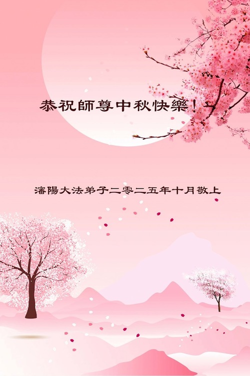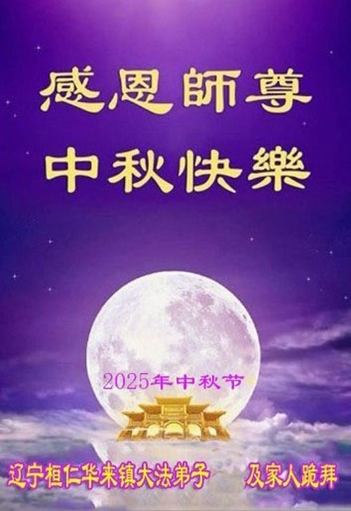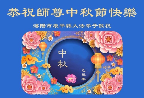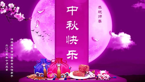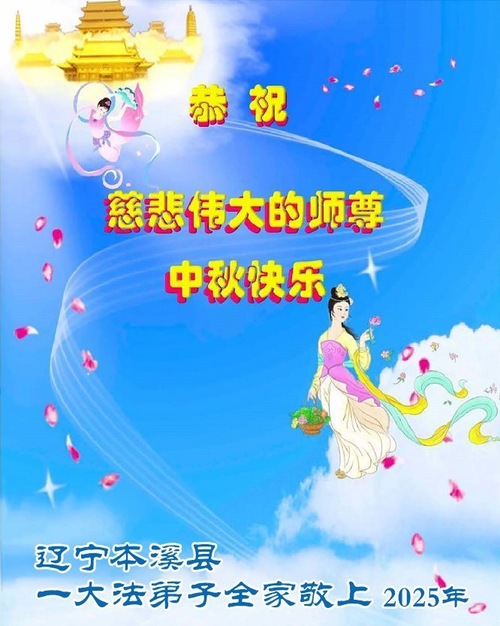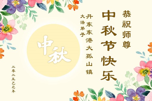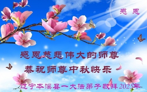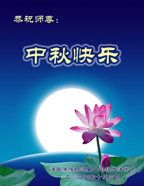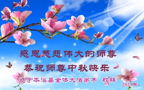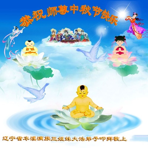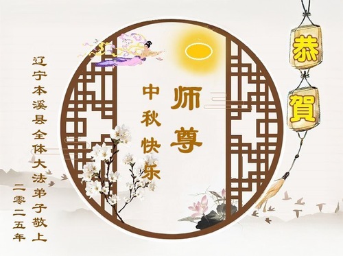 Praktykujący Falun Dafa z miasta Benxi w prowincji Liaoning życzą Czcigodnemu Mistrzowi Szczęśliwego Święta Środka Jesieni!