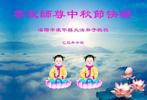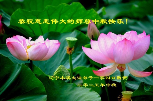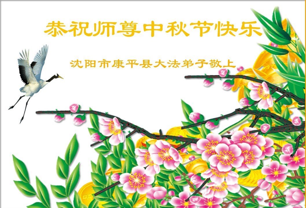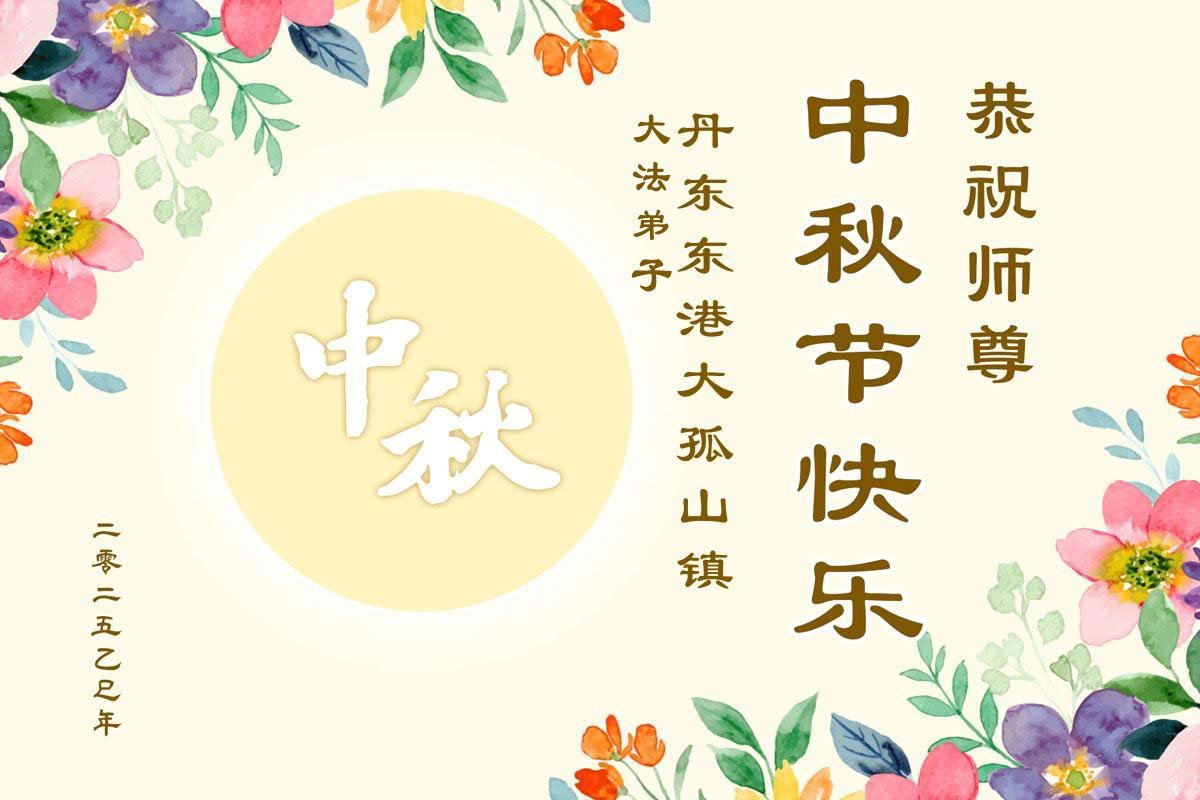 Praktykujący Falun Dafa z miast Fushun, Dandong i Tieling w prowincji Liaoning życzą Czcigodnemu Mistrzowi Wesołego Święta Środka Jesieni!