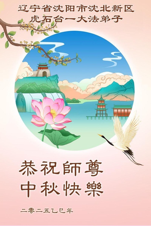 Praktykujący Falun Dafa z miasta Shenyang w prowincji Liaoning życzą Czcigodnemu Mistrzowi Szczęśliwego Święta Środka Jesieni!