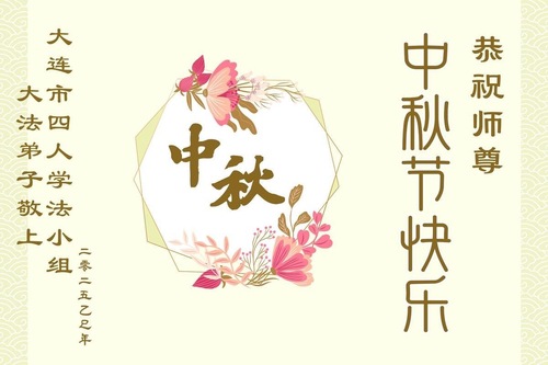 Praktykujący Falun Dafa z miasta Dalian w prowincji Liaoning życzą Czcigodnemu Mistrzowi Szczęśliwego Święta Środka Jesieni!