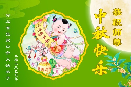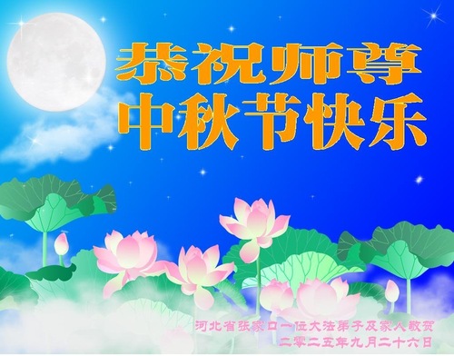 Praktykujący Falun Dafa z miasta Zhangjiakou życzą Czcigodnemu Mistrzowi Szczęśliwego Święta Środka Jesieni!