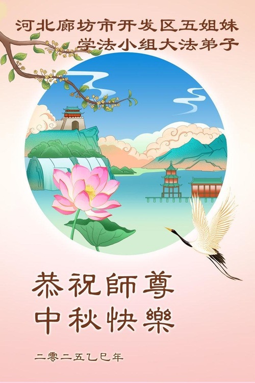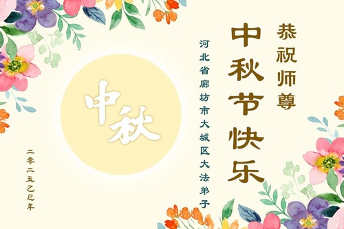 Praktykujący Falun Dafa z miasta Langfang życzą Czcigodnemu Mistrzowi Wesołego Święta Środka Jesieni!