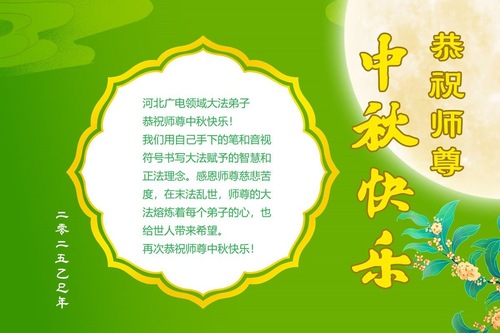 Praktykujący Falun Dafa z prowincji Hebei życzą Czcigodnemu Mistrzowi Szczęśliwego Święta Środka Jesieni!