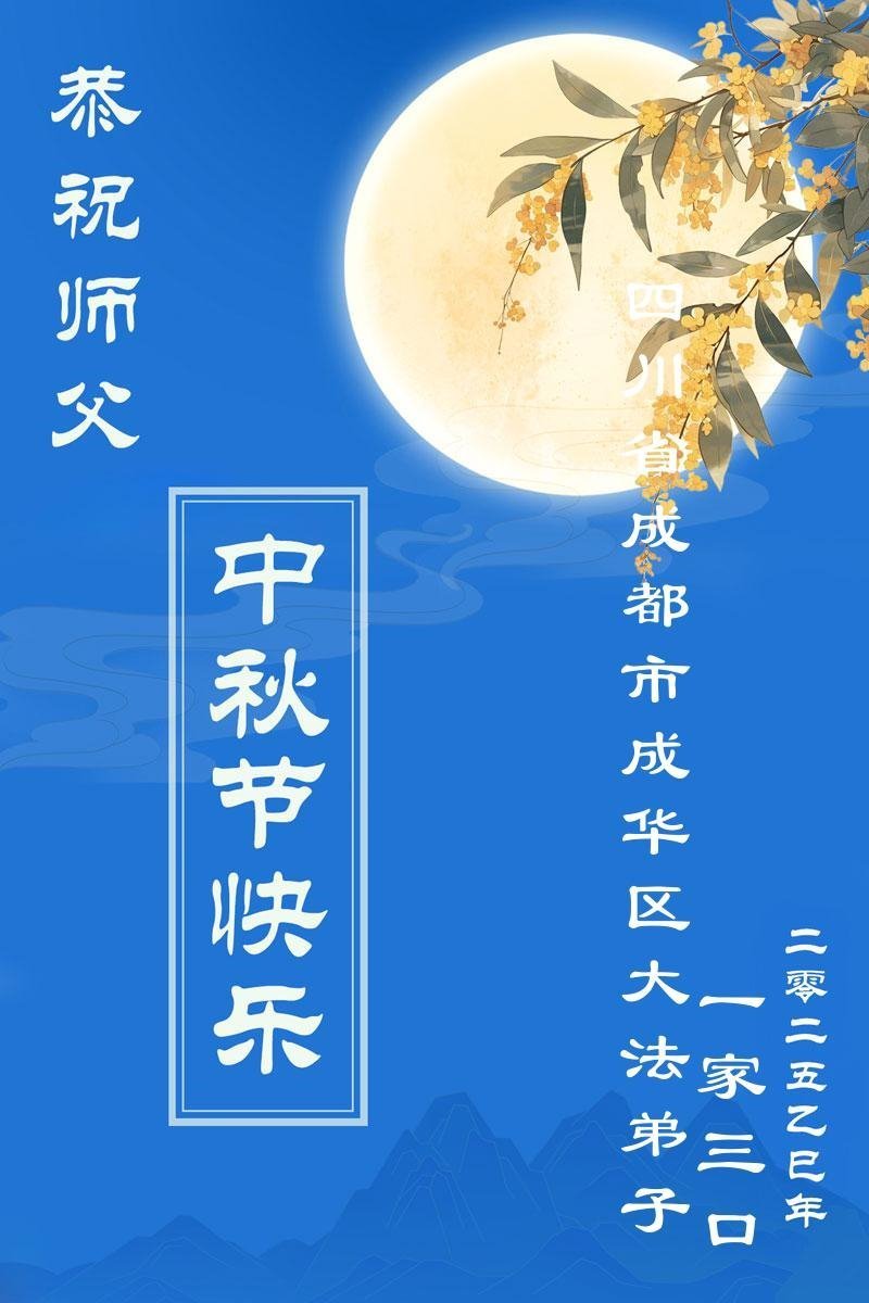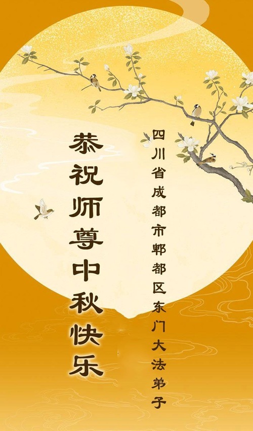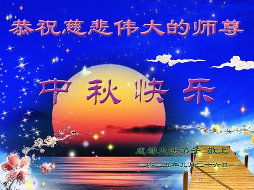 Praktykujący Falun Dafa z miasta Chengdu życzą Czcigodnemu Mistrzowi Szczęśliwego Święta Środka Jesieni!
